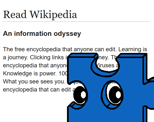 A simulated Wikipedia rabbit hole! With quests! Note: sorry about the puzzle piece. I don't know why she's there. Just try to ignore her.